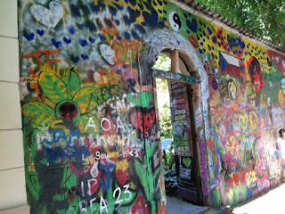 John Lenons wall, were people peacefully came to protest the communist regime, first graffiti was of John Lenon.